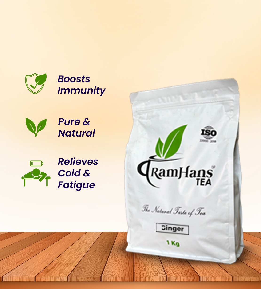 Ginger tea is a warming and invigorating delight combining premium tea and ginger root. Ramhans Ginger tea is the perfect complement for a refreshing start to your day or for soothing your throat and boosting immunity. Turn up your temperature with a cup